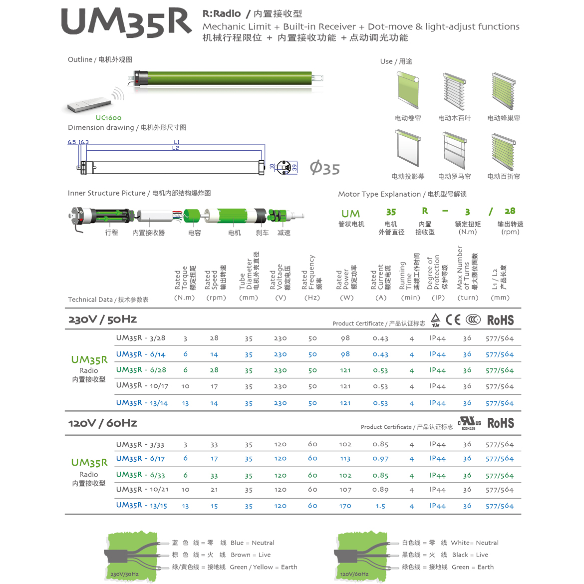 R:Radio/內(nèi)置接收型 機(jī)械行程限位+內(nèi)置接收器+點(diǎn)動(dòng)調(diào)光功能