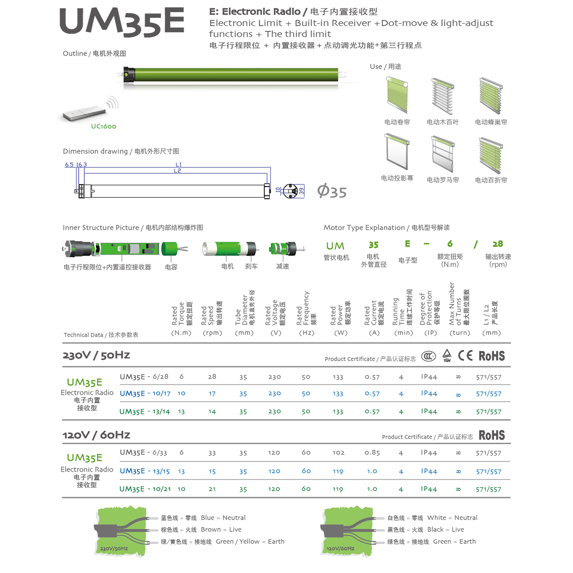 E:Electronic Radio/電子內(nèi)置接收型 電子行程限位+內(nèi)置接收器+點(diǎn)動(dòng)調(diào)光功能+第三行程點(diǎn)